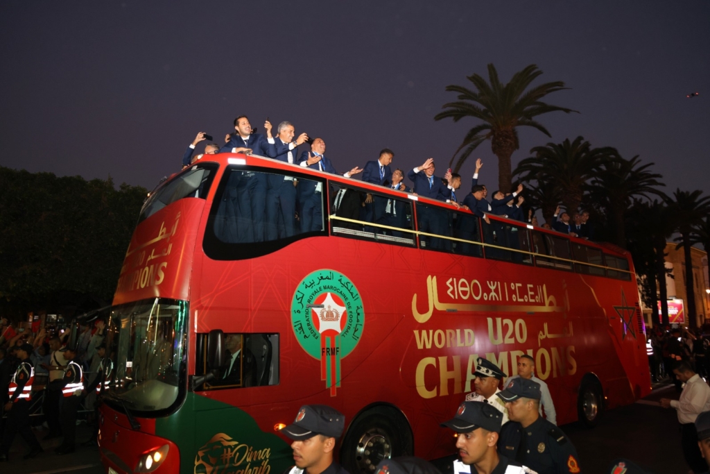 خص المغاربة، عشية اليوم الأربعاء، أشبال الأطلس باستقبال يليق بالفائز ببطولة كأس العالم العالم لأقل من 20 سنة، حيث احتشد آلاف المواطنين على طول شارع محمد الخامس، بالعاصمة الرباط، منتظرين مرور الحافلة المكشوفة التي أقلت أبطال العالم إلى القصر الملكي، في مشهد يعطي للوطنية عنواناً مميزاً ووجها مغايراً للتلاحم الشعبي والفرح المغربي.